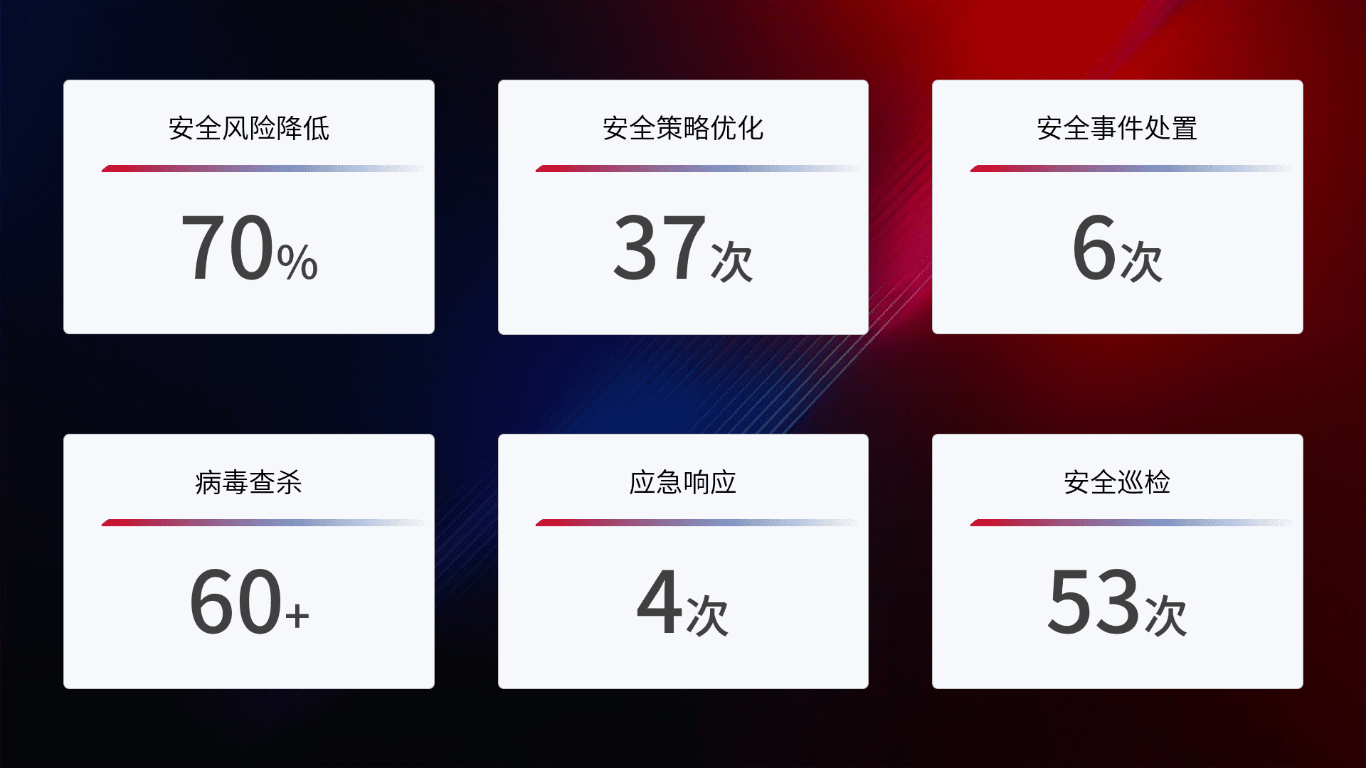 提供全面的安全事件报告体系,,包括处置报告、、周报、、、季度和年度总结,,结合持续监控,,,帮助客户深入了解网络安全状况。。。